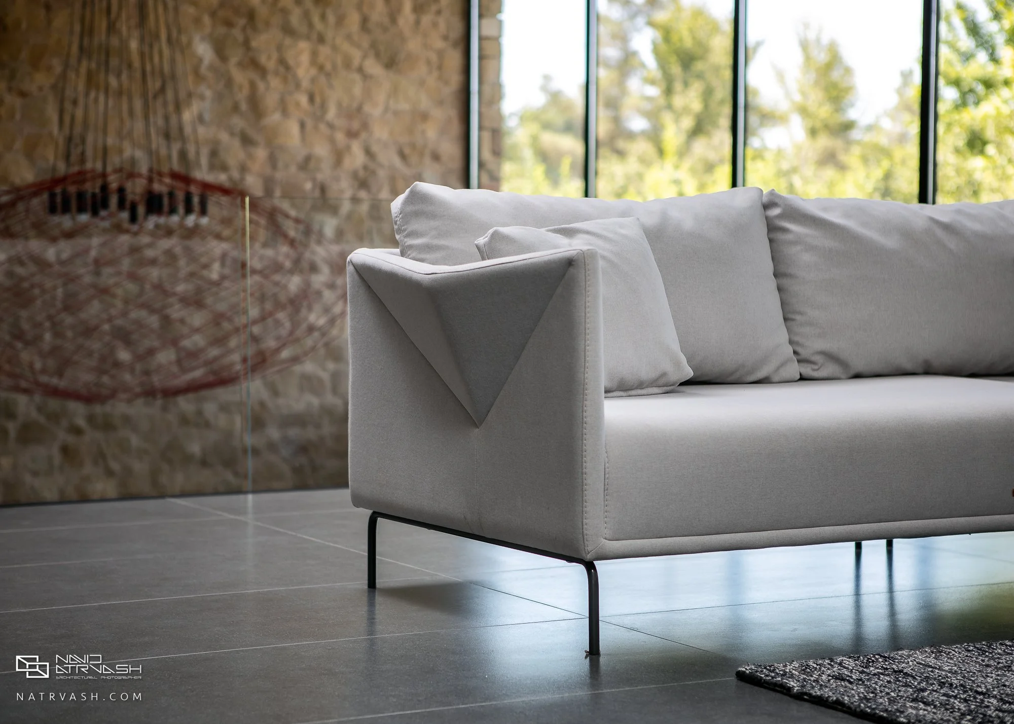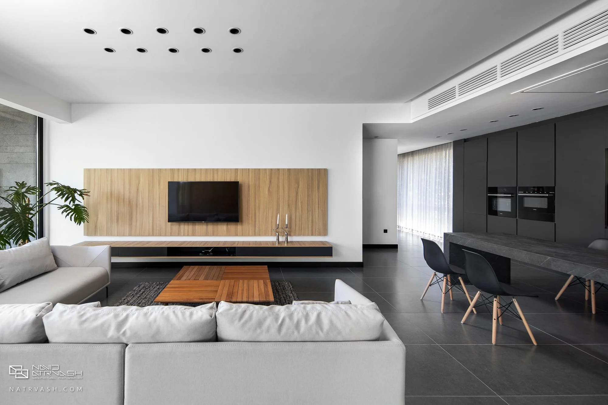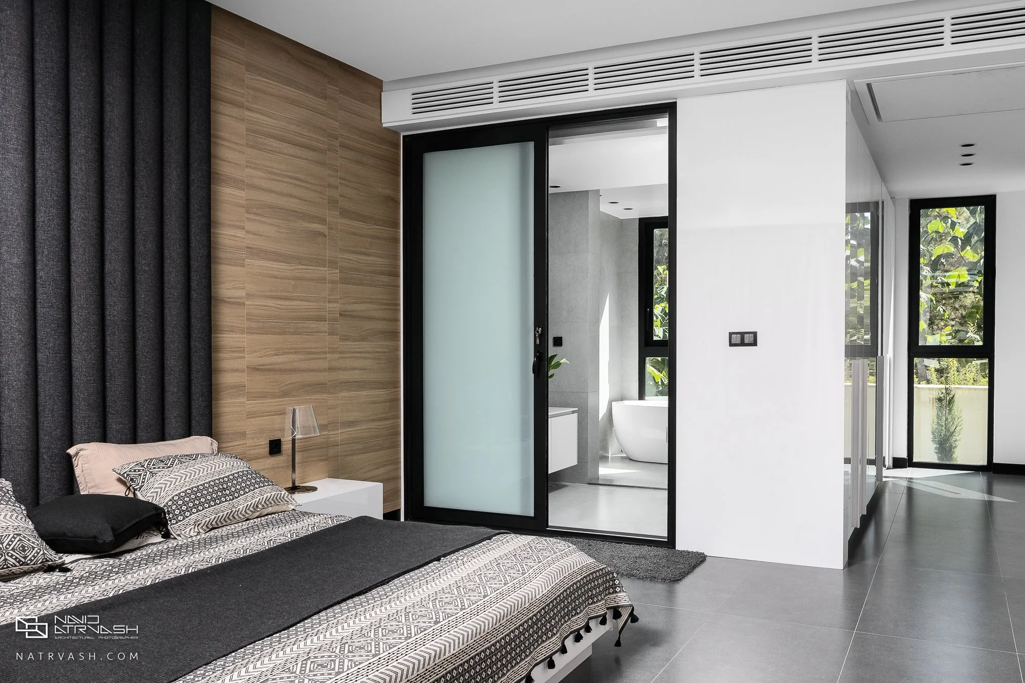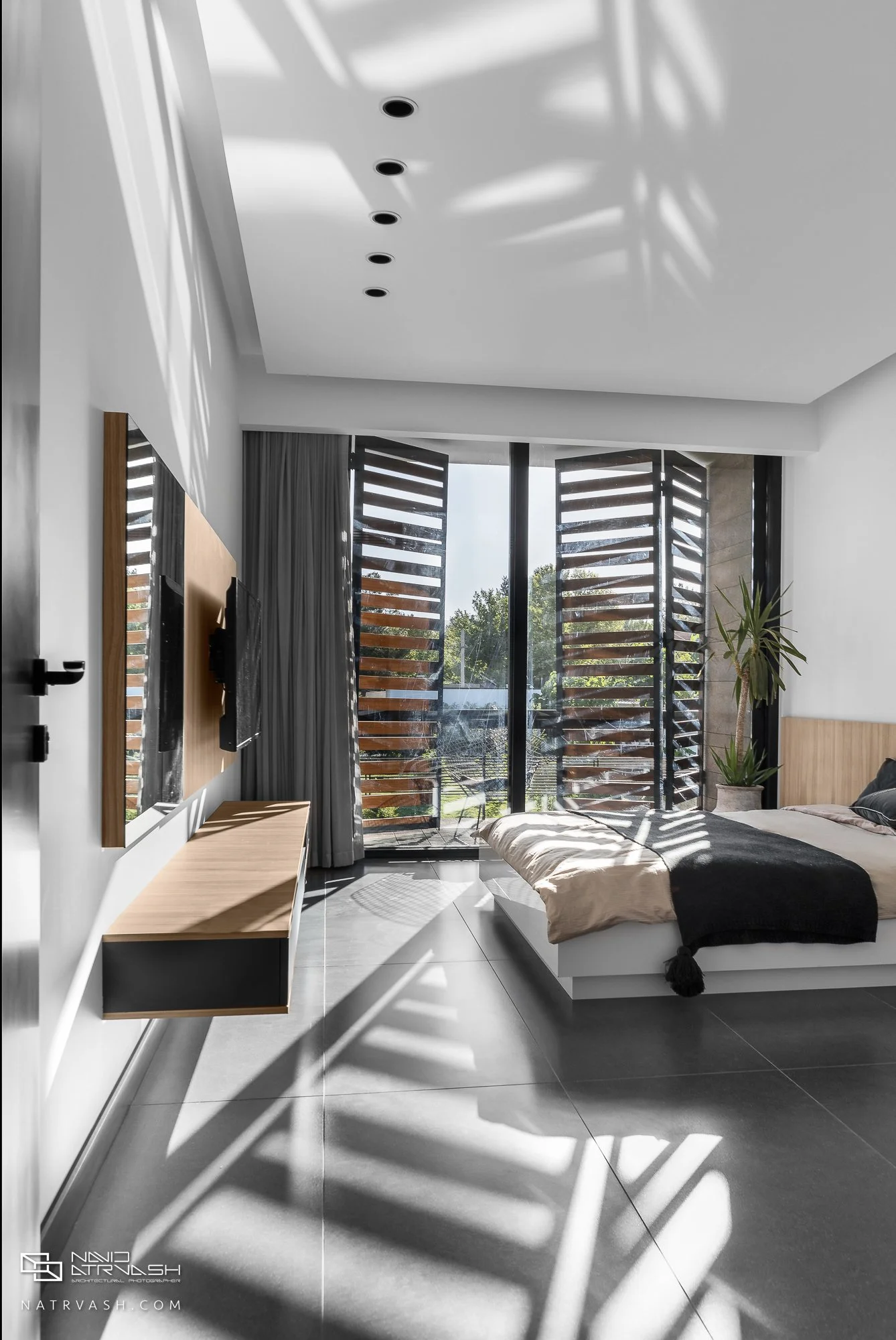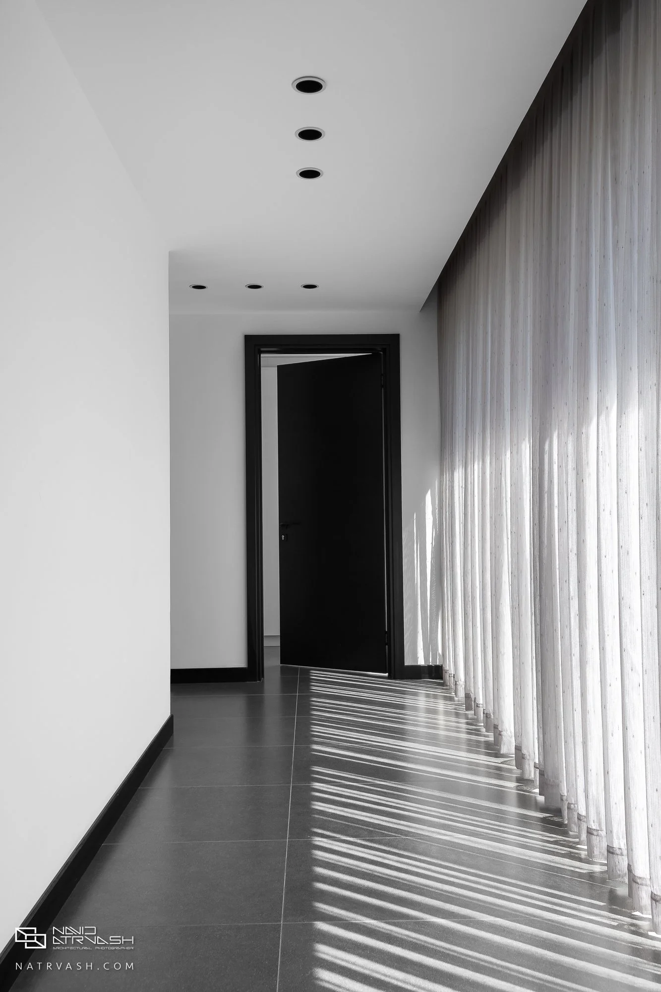Villa Ramp, situated in the Gode Gowim area north of Shiraz, exemplifies a seamless integration of architecture and landscape. Once agricultural land, the site has transformed into a garden-city district, inspiring a design that eliminates boundaries between the built environment and nature. The villa is embedded into the terrain, with two ramps—one ascending to the private quarters and the other descending to public spaces—creating a fluid transition between structure and surroundings. The upper level houses bedrooms and a living area with adjustable wooden screens for controlled light and views, while the lower level, designed for gatherings, features retractable partitions to adapt to various occasions. Local stone clads the sunken portions, blending with the environment, while a suspended white concrete plane defines the villa’s form, appearing as an extension of the landscape.